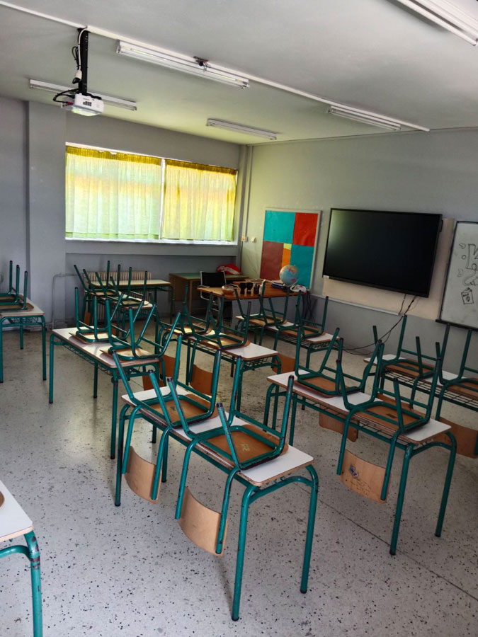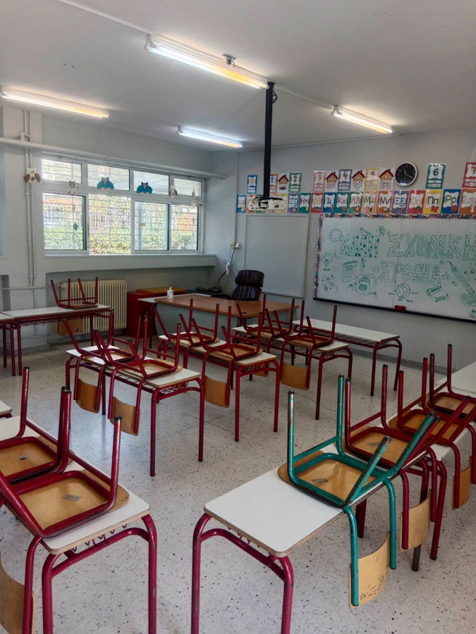 Καθαρισμός και απολύμανση σχολικών επιφανειών, τραπεζιών, καρεκλών και παιχνιδιών